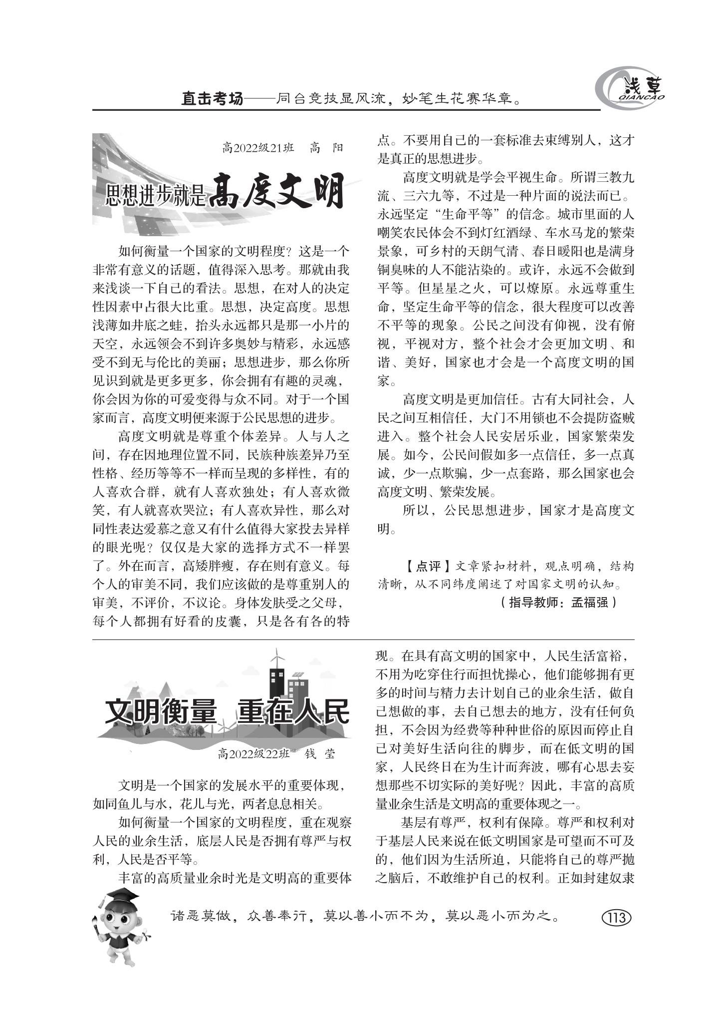 思想進(jìn)步就是高度文明;文明衡量,重在人民