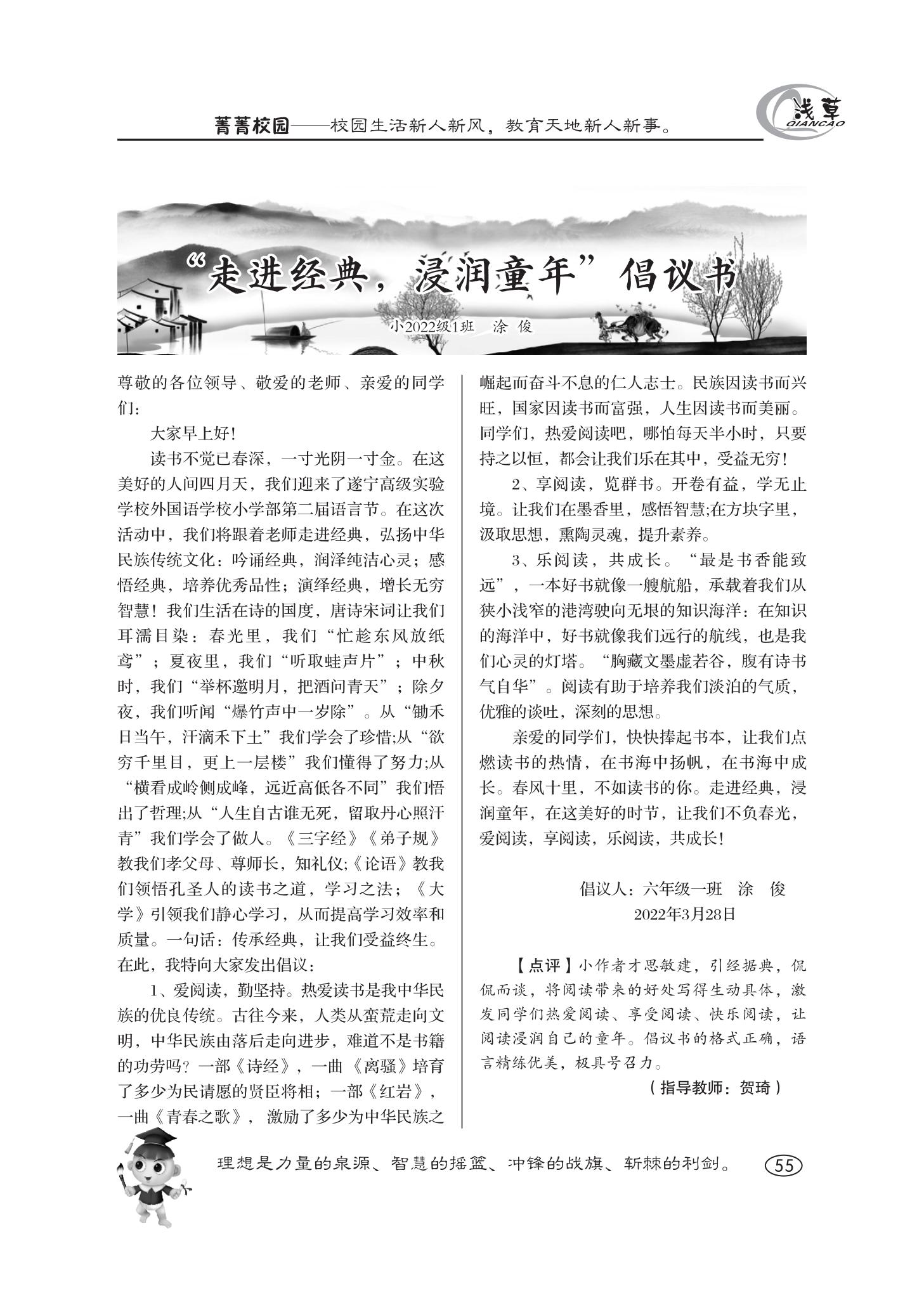 走進(jìn)經(jīng)典,浸潤童年倡議書