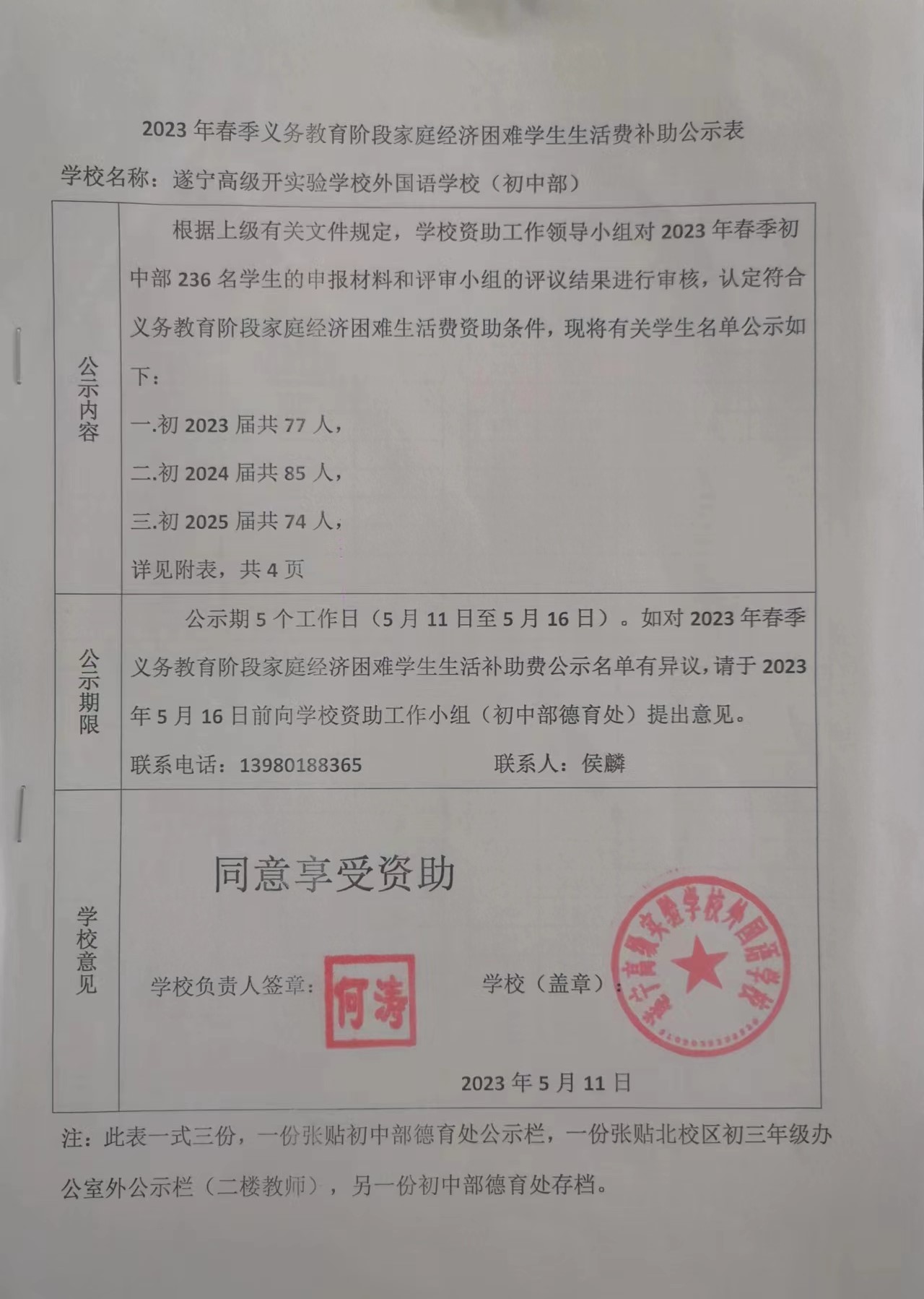 關(guān)于下達(dá)2023年度春季學(xué)期義務(wù)教育階段家庭經(jīng)濟(jì)困難學(xué)生生活補(bǔ)助資金的通知