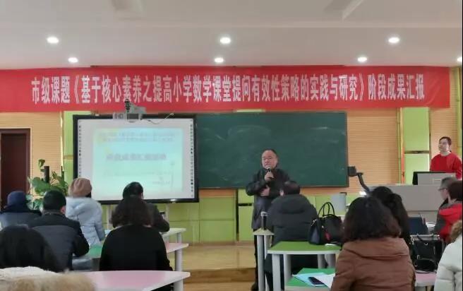 遂寧高級實驗學(xué)校長期以來秉承“科研強校,科研興?!钡慕逃谥?,高度重視科研工作,以研促學(xué),以研促教,以研促考。2018年12月14日,學(xué)校隆重舉行了市級課題《基于核心素養(yǎng)之提高小學(xué)數(shù)學(xué)課堂提問有效性策略的實踐與研究》階段成果匯報活動,此次活動由小學(xué)部教科室副主任李琳主持。蒞臨現(xiàn)場的領(lǐng)導(dǎo)有遂寧市教育科研所副所長殷紅斌,國開區(qū)社會事業(yè)局文教體科長袁衛(wèi)東,遂寧高級實驗學(xué)校校長羅爽,遂寧高級實驗學(xué)校黨總支書記、外國語學(xué)校校長羅光友,副校長漆斌、張曉敏,小學(xué)部主任廖曉芳等。參加活動的還有遂寧高級實驗學(xué)校外國語學(xué)校小學(xué)部全體數(shù)學(xué)教師和國開區(qū)兄弟學(xué)校的老師們。