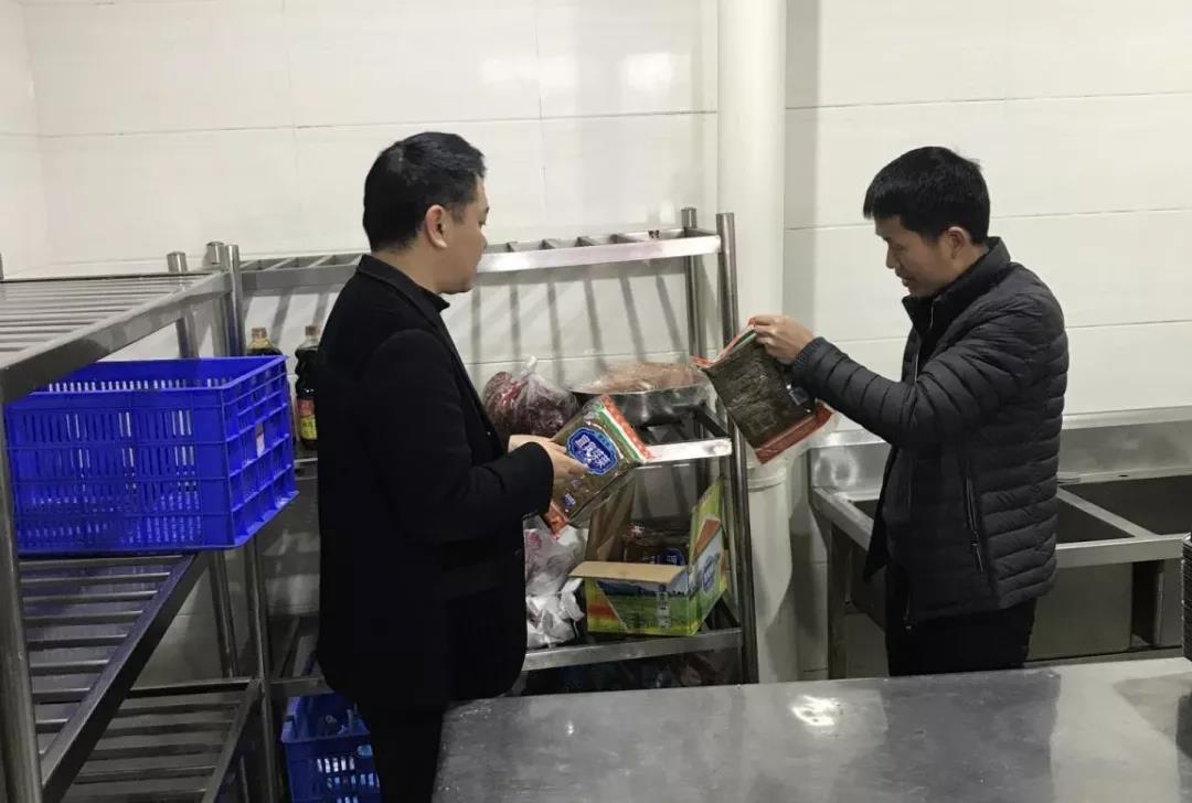 唐劍主任檢查食堂庫存產(chǎn)品的來源及保質(zhì)期