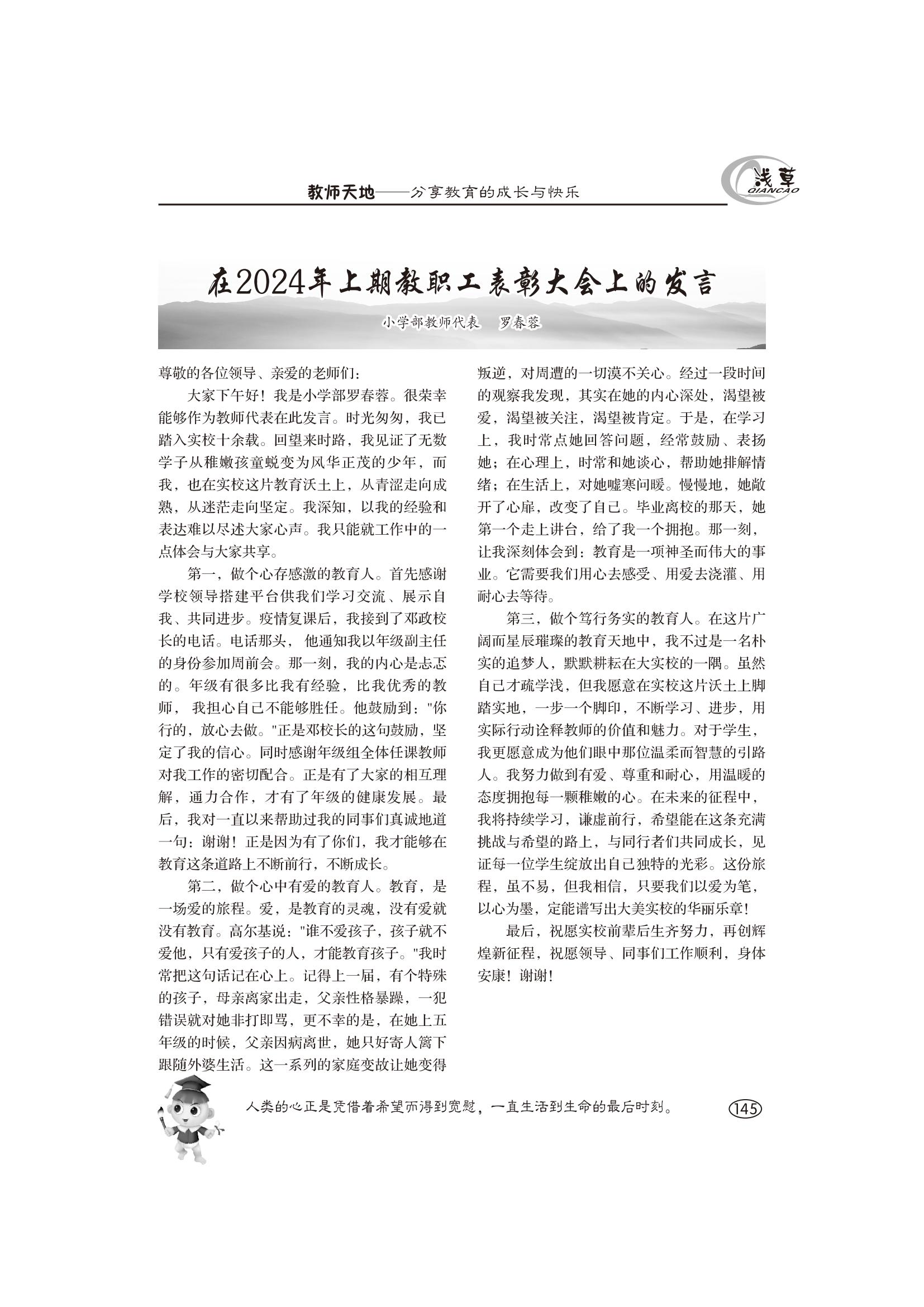 在2024年上期教職工表彰大會(huì)上的發(fā)言(羅春蓉)