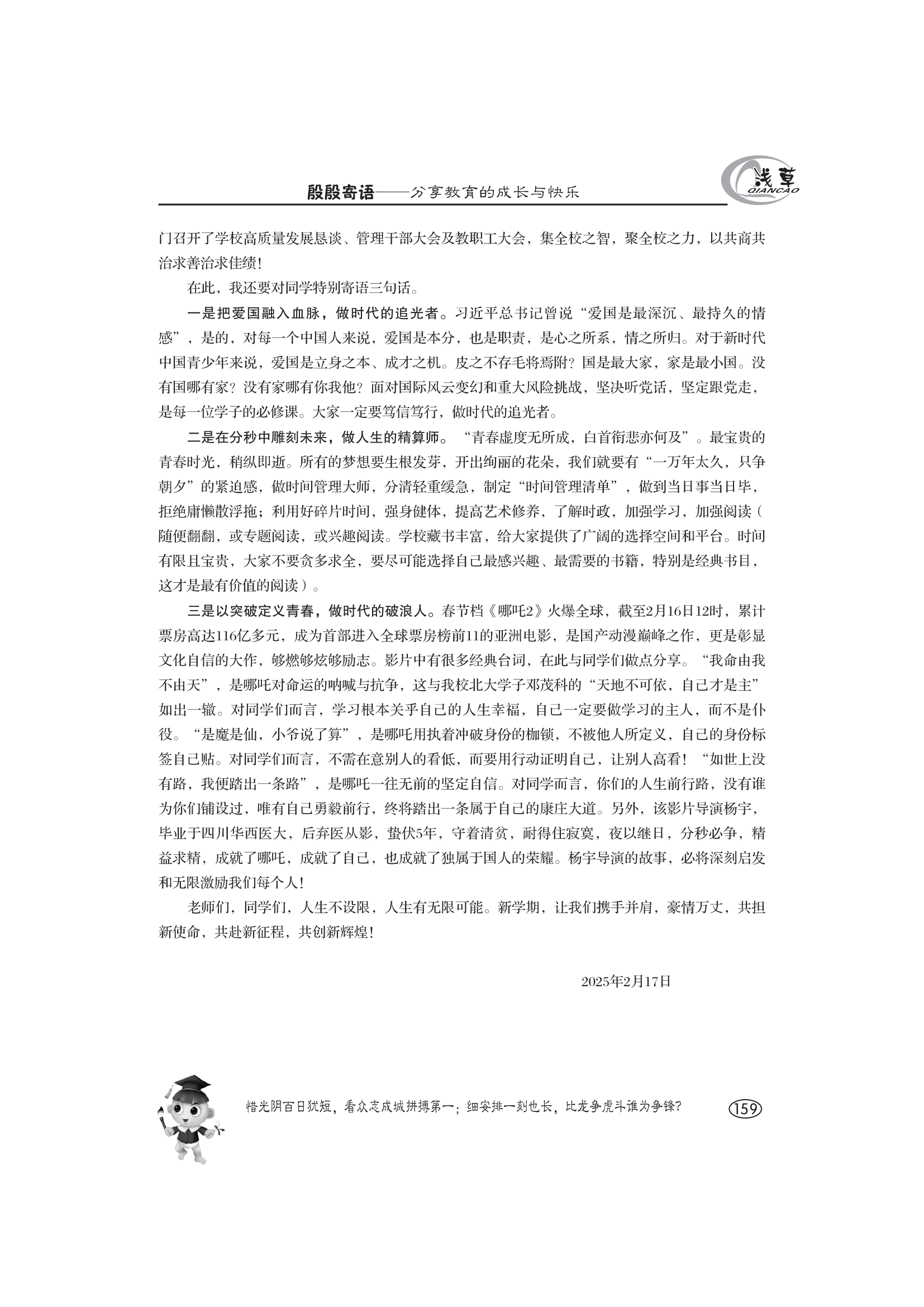 在2025年春季開學(xué)第一次升旗儀式上的講話 -羅爽